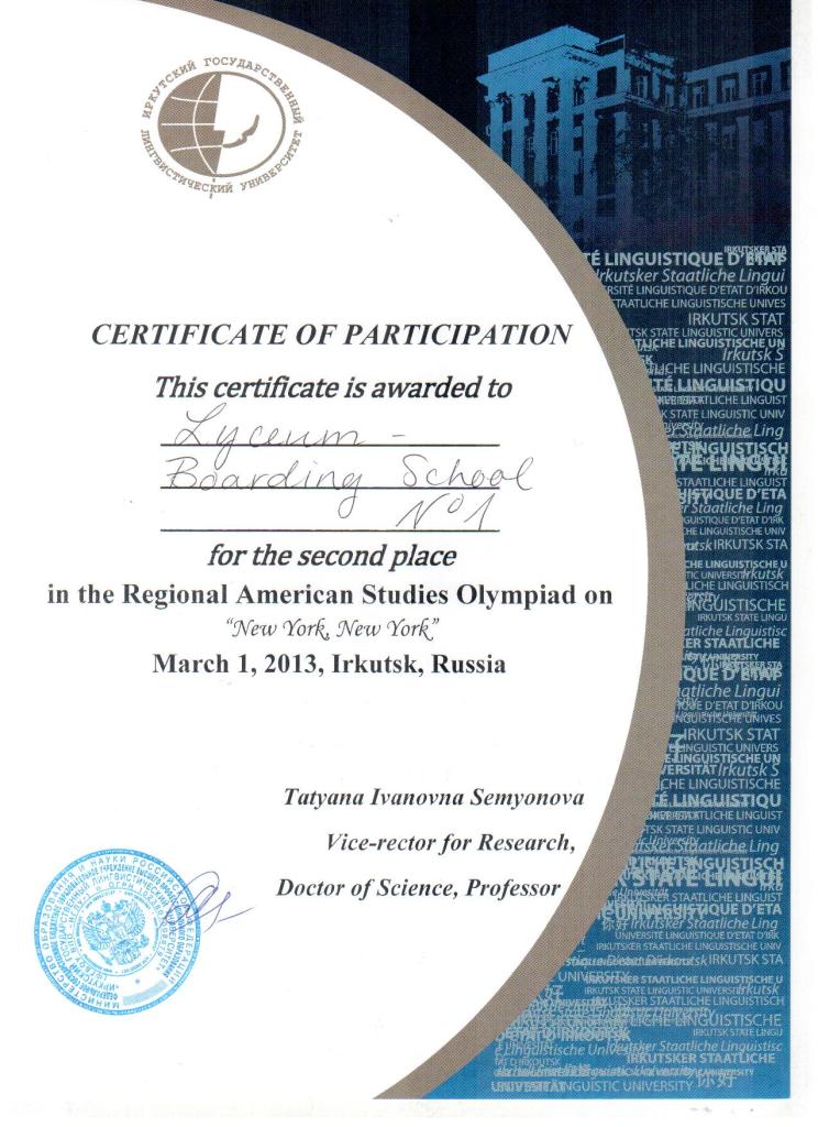 в Областной олимпиаде по американистике, проходившей в ИГЛУ 01 марта 2013 года!